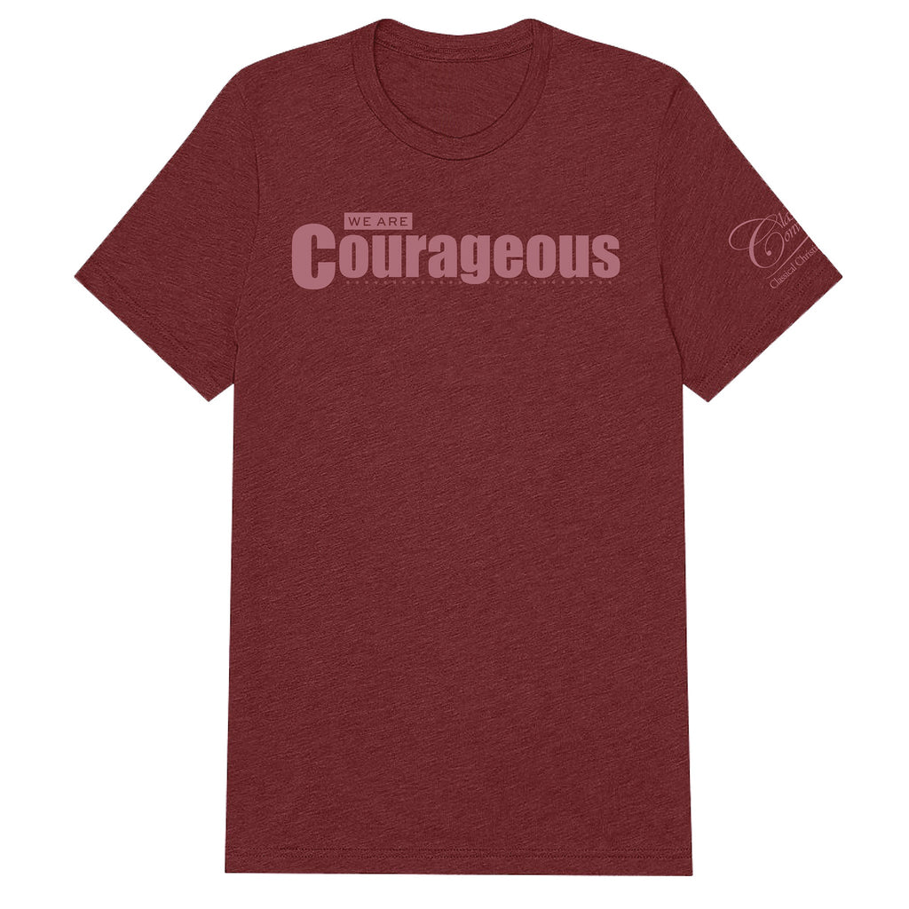 Crafted from an exceptionally soft triblend fabric, this unisex tee combines comfort with meaning. The clean “We Are Courageous” design on the front and the CC logo on the left sleeve embody the strength it takes to educate classically, think critically, and live courageously for God’s glory.